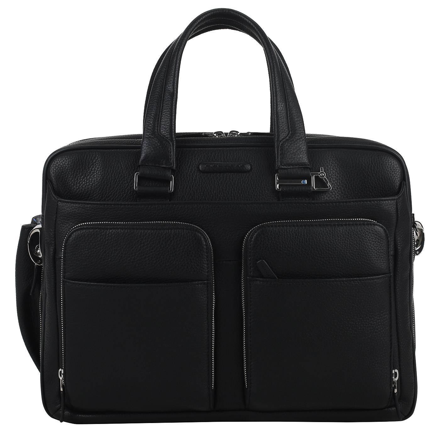 Отделения для ноутбука и планшета, брелок для ключей, навесной замочек с ключами, кармашки для шариковых ручек, съемный внутренний кармашек(имеет одно отделение и два внешних кармана), внешний выдвижной карман для пропуска.