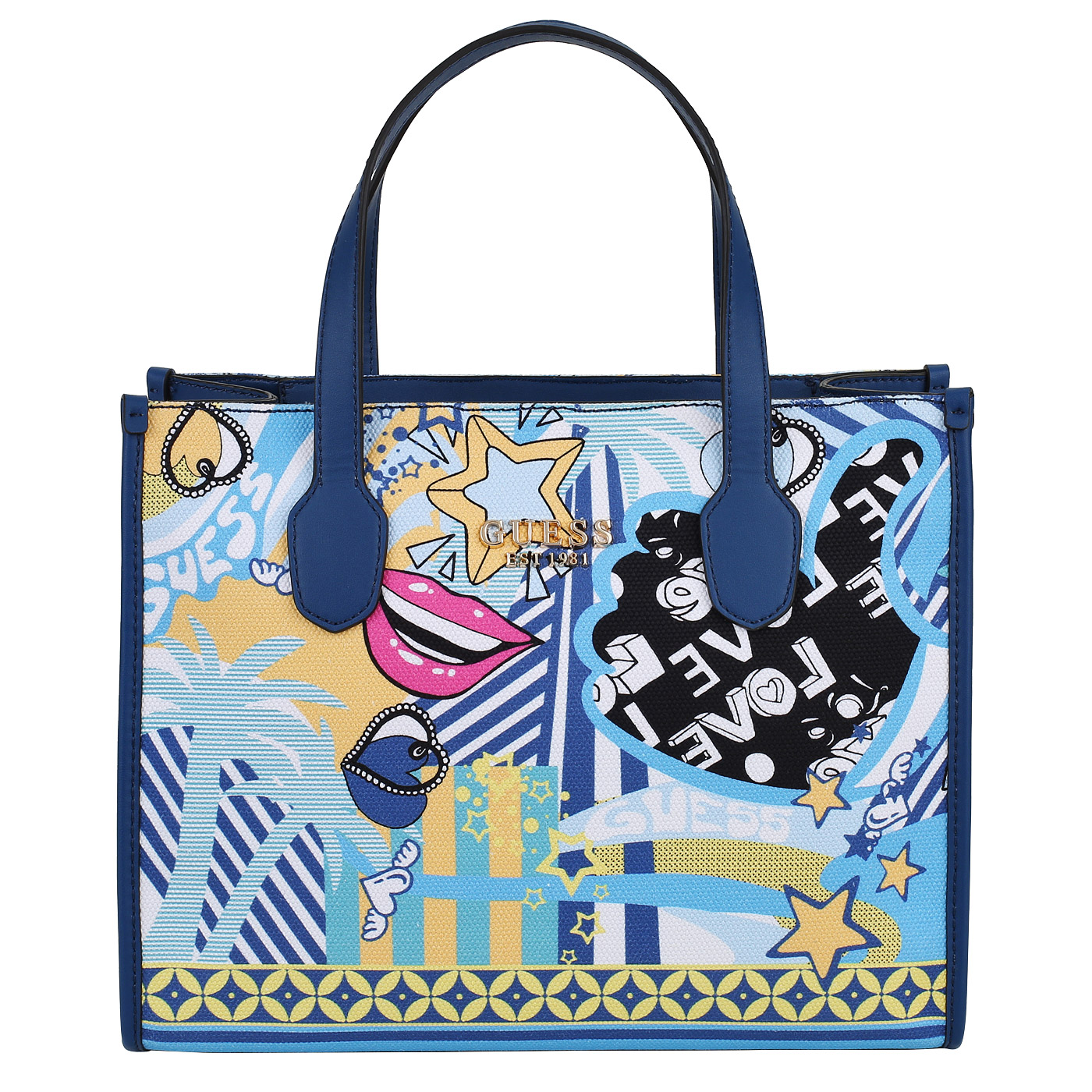 Сумка с двумя ручками Guess Silvana 2 HWXG86 65220_blue multi_pc - 2000558616997 мульти хлопок 34 x 26 x 13 Цена 11150 руб. купить в интернет-магазине PanChemodan.ru в Ставрополе