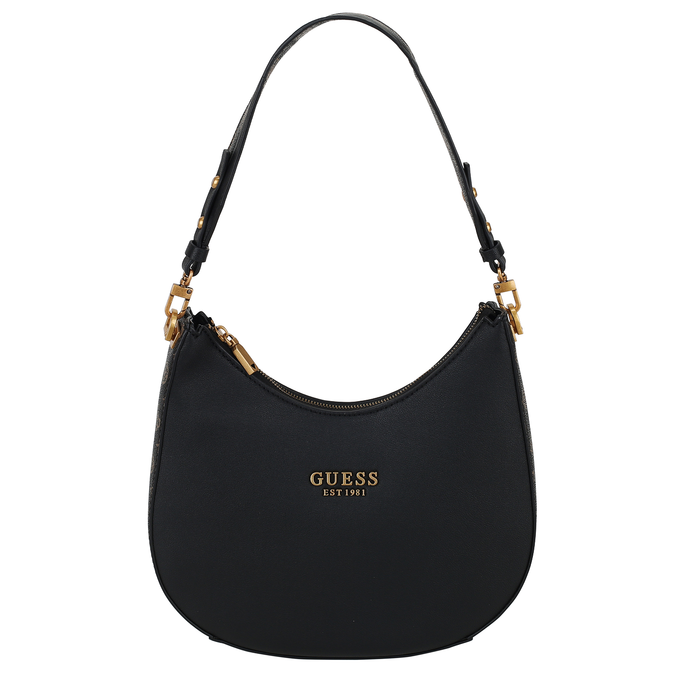 Сумка с ручкой Guess Fynna HWVB89 93020_black/mocha logo - 2000558561297 черный полиуретан 29,5 x 28 x 6 Цена 10850 руб. купить в интернет-магазине PanChemodan.ru в Ставрополе